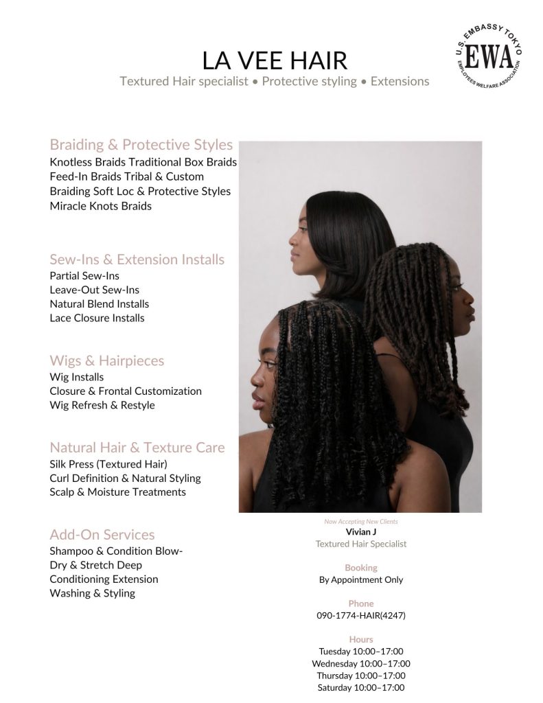EWA’s Hair Salon, and Beauty & Nail Salon offer top quality service with professional hair stylists and manicurist that will keep you looking your best!